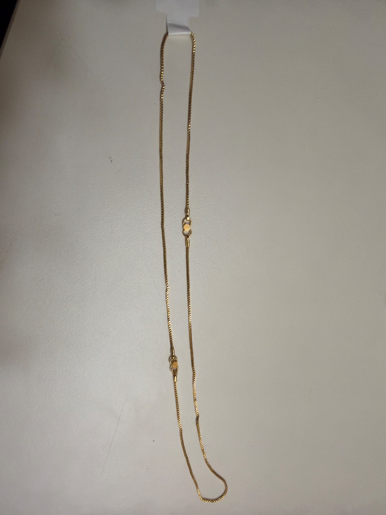 Elevate your style with this exquisite gold box chain anklet. Its delicate design and radiant finish provide a touch of effortless elegance, making it a perfect accessory to brighten any outfit or occasion.