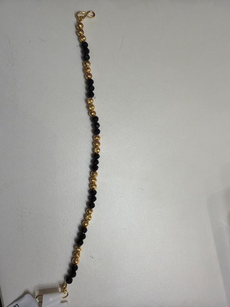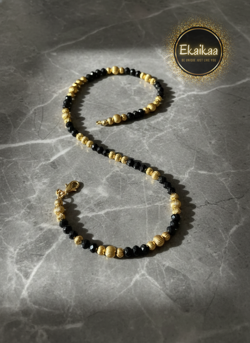 Adorn your wrist with the elegant G.Bracelet, a captivating blend of shimmering gold-tone and sophisticated black faceted beads. Its classic design offers versatile styling, perfect for adding a touch of timeless allure to any ensemble, from daily wear to special occasions.